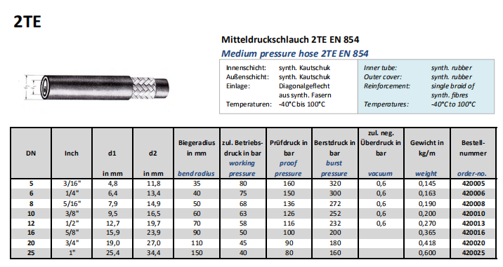 Mitteldruckschlauch 2TE EN 854,Medium pressure hose 2TE EN 854